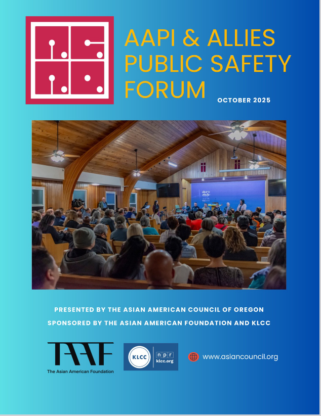On October 23, 2025 we hosted an AAPI & Allies Public Safety Forum at 6:30 p.m. at the Korean Presbyterian Church of Eugene, 1500 Taney Street, Eugene, OR 97402.