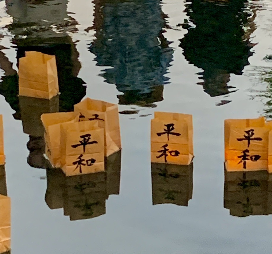 The event opens at 7:00 p.m. with Eugene Taiko drumming and concludes at dusk with a floating lantern ceremony honoring those who perished. Each lantern also represents a personal commitment to advocate for peace.